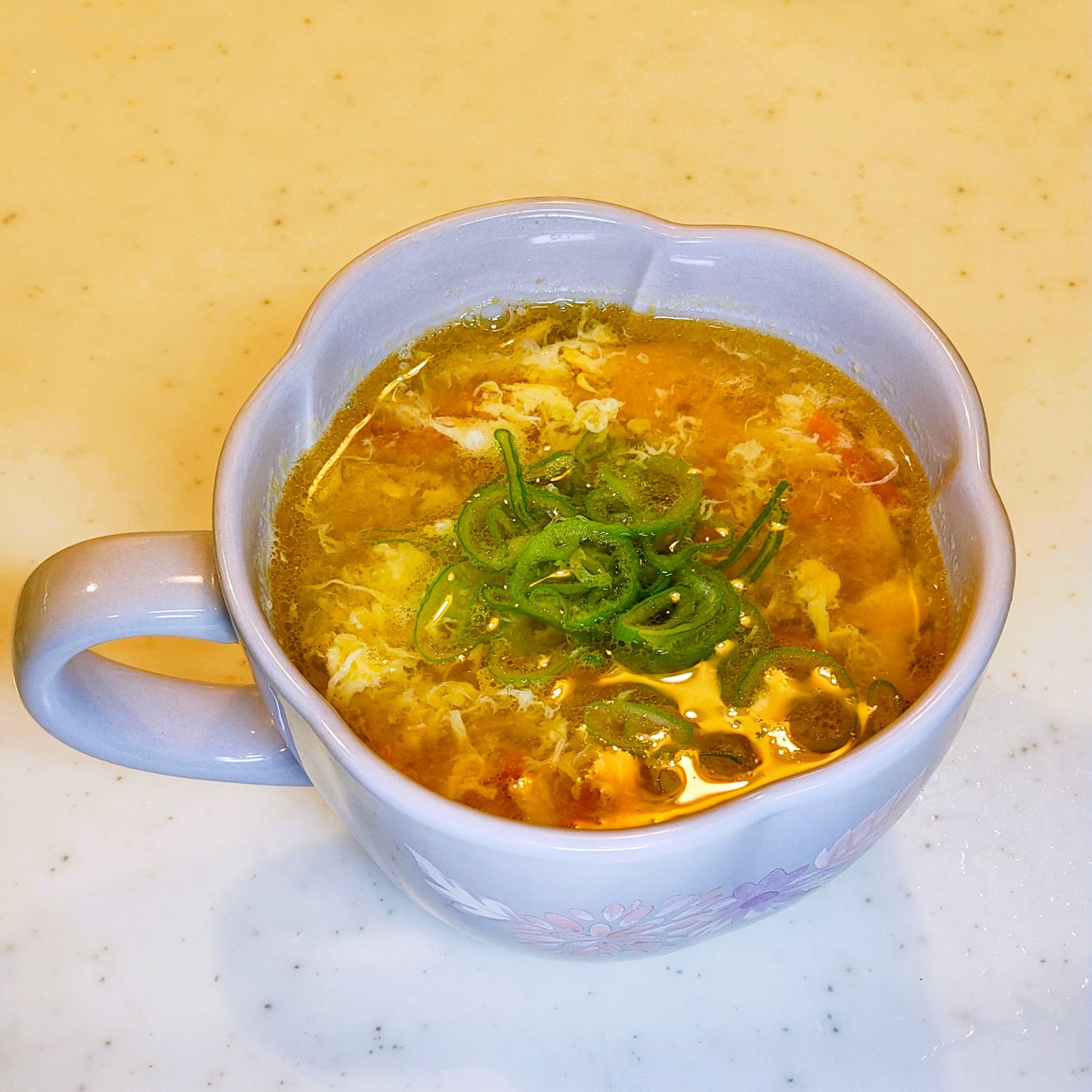 冬トマトの酸味が効いているのに、卵のまろやかさとごま油の風味で、バランスの良い味わいに仕上がります
